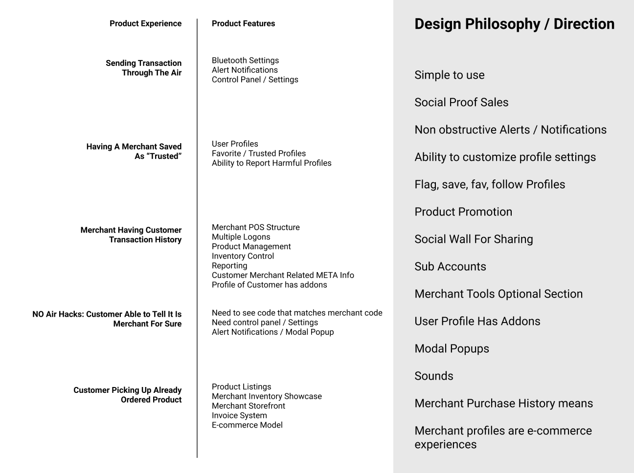 I then mapped out what would be necessary to have this scenario exist in the future (based on my own opnion and not deep blockchain knowledge) , and worked my way backward by identifying features necessary to prioritize in the roadmap so that we begin designing around those models in the early stages of the product.